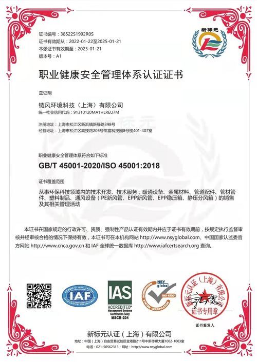2022年1月22日,經(jīng)過(guò)權(quán)威認(rèn)證機(jī)構(gòu)的多輪嚴(yán)格評(píng)估和審核,鏈風(fēng)環(huán)境科技(上海)有限公司順利通過(guò)ISO9001質(zhì)量管理體系認(rèn)證、ISO14001環(huán)境管理體系認(rèn)證和ISO45001職業(yè)健康安全管理體系認(rèn)證。