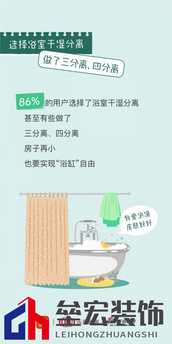 《報告》指出,86%的用戶選擇了浴室干濕分離,甚至有些做了三分離、四分離。傳統(tǒng)衛(wèi)生間的布局是將沐浴區(qū)、盥洗區(qū)以及坐便區(qū)結(jié)合在一起,如果衛(wèi)生間的通風條件不是很好,而在日常使用的時候潮濕的空氣又滯留在浴室里,長期下來既難清潔打理又影響身體健康。 為了提高生活品質(zhì)以及對生活便利的需求,干濕分離的概念逐漸流行開來。將淋浴區(qū)與其他功能區(qū)域進行劃分后,衛(wèi)浴場地既干燥衛(wèi)生又能維持浴室整體環(huán)境的整潔美觀。其實不管是幾分離法,最終的目的都只是為了將衛(wèi)生間洗漱、沐浴、如廁、更衣這幾個基本功能分離開來。 齊家網(wǎng)研究院基于齊家的海量用戶數(shù)據(jù)優(yōu)勢,整合全行業(yè)數(shù)據(jù)資源,堅守獨立、客觀、建設(shè)性的原則,根據(jù)家裝用戶的家庭成員數(shù)量、年齡層次、職業(yè)興趣、生活習慣等方面進行多維度分析,希望對裝企以及行業(yè)相關(guān)企業(yè)的運營提供一點有益的啟發(fā)和幫助。 什么,裝修還用自己的錢?!齊家裝修分期,超低年利率3.55%起,最高可貸100萬。立即申請享受優(yōu)惠 |