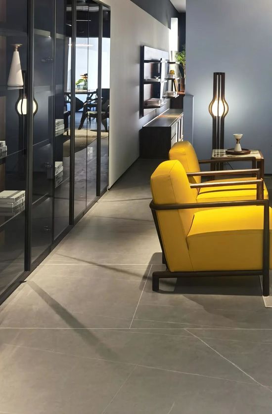 地面選用阿瑪尼灰的大巖板,不僅凸顯了整個空間的質感,也提升了場景的縱深感。