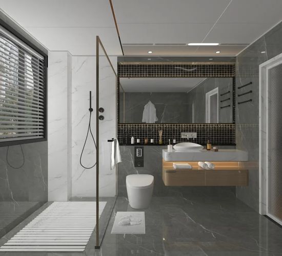煥新裝衛(wèi)浴 融合R1K+4平博美大板 大理石與白色大板吊頂?shù)膬?yōu)雅組合,讓整個(gè)衛(wèi)浴空間凸顯小清新的感覺,明亮簡(jiǎn)約,久看不膩。