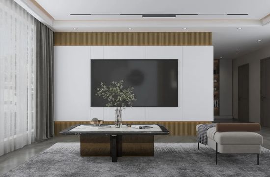 雅致清新背景墻 木紋:鳳眠蘇、黃粟柚、青杉木 純色:月牙白+布魯深灰 石紋:黑金花石、蜀白董石 清新的配色、體現(xiàn)品質(zhì)的家具,所有的一切都在描述家的概念。