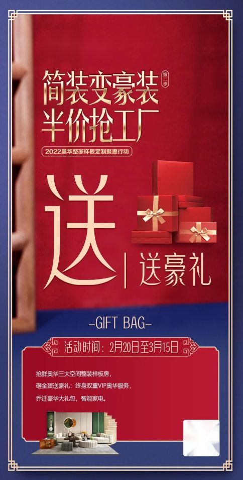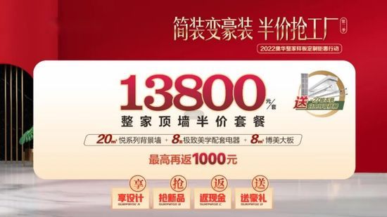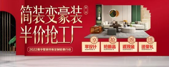 2022年奧華開年大促來啦!簡(jiǎn)裝變豪裝·半價(jià)搶工廠一大波爆款單品任你挑選,還有低至5折的優(yōu)惠等你來購! 頂墻套餐 優(yōu)惠加倍