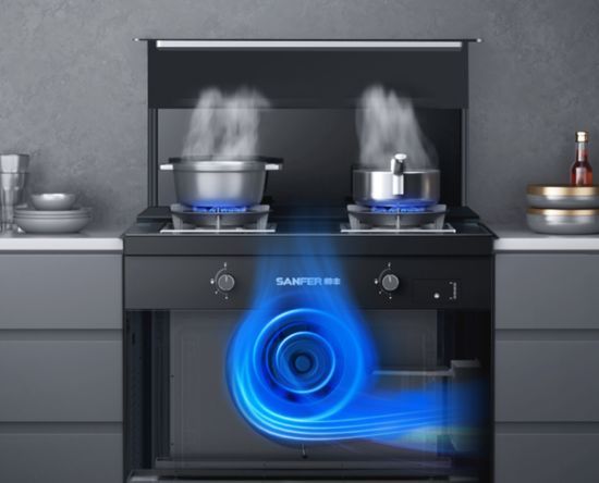 ▲帥豐集成灶 在集成灶之前,油煙的解決只能依靠油煙機。但油煙機只有吸凈60%左右的油煙,這樣的數(shù)據(jù)表現(xiàn),在中國的開放式廚房里,那是萬萬行不通的。集成灶的普及,給開放式廚房”油煙無殘留“提供了一個新思路。 增大吸力+縮短距離:油煙無處可逃