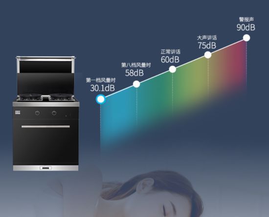 ▲帥豐集成灶,離油煙的距離更近 集成灶對油煙的解決從兩方面著力,增大吸力和縮短距離并舉。其采用側(cè)吸的方式,增強攏煙,防止油煙的逸散;大吸力的風(fēng)機,配備超短距離的吸煙距離,可以實現(xiàn)比傳統(tǒng)油煙機數(shù)倍的吸煙效率。集成灶對油煙的吸凈率高達95%以上,而帥豐集成灶的吸油煙率更是高達99.96%,幾乎接近0的跑煙率,無懼中式爆炸產(chǎn)生濃煙,真正做到廚房無油煙。 超低噪音:開放式廚房的最愛