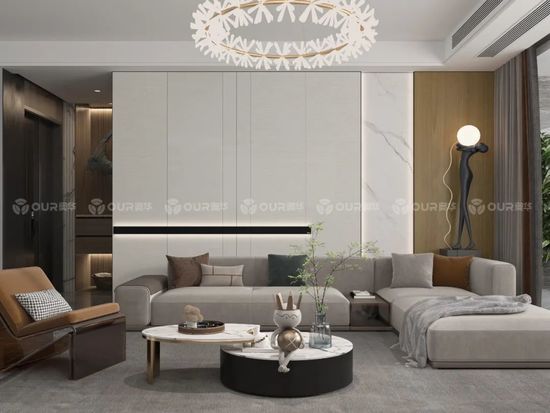 百變的空間 客廳沙發(fā)背景墻以黃栗柚為點睛之筆,輕輕觸摸墻體表面,能夠清晰地感受到木材的紋理,淡淡的暖色調讓整個家充滿溫馨。 沙發(fā)背景墻以黃栗柚格柵進行拼接過渡,木與大理石的輝映,克制而平衡。格柵理性的直線在娓娓道來的節(jié)奏感中,生發(fā)出更多的靈氣,像是身處大自然之中,自由呼吸。 應用與優(yōu)勢 奧華黃栗柚逼真還原了木材細節(jié),高顏值的同時,耐磨好打理,觸感舒適不覺冰冷,且防撞、防潮、易清潔,更加適合有老人和孩子的家庭。 3000*880*10mm、2600*880*10mm兩款規(guī)格,黃金比例讓空間更加個性化、藝術化,百搭隨心。堅實耐用的奧華黃栗柚,為環(huán)保交出一份令人滿意的答卷。 圖片5