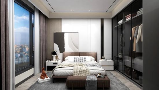 ▲TE017-5 次臥設(shè)計(jì)了一整面墻的透明式衣柜,方便衣物收納需求的同時(shí)增大了視覺空間。軟裝方面則采用了大量頗具藝術(shù)感的設(shè)計(jì),使得整個(gè)臥室兼具了美觀性和實(shí)用性。 責(zé)任編輯:sunweiying |