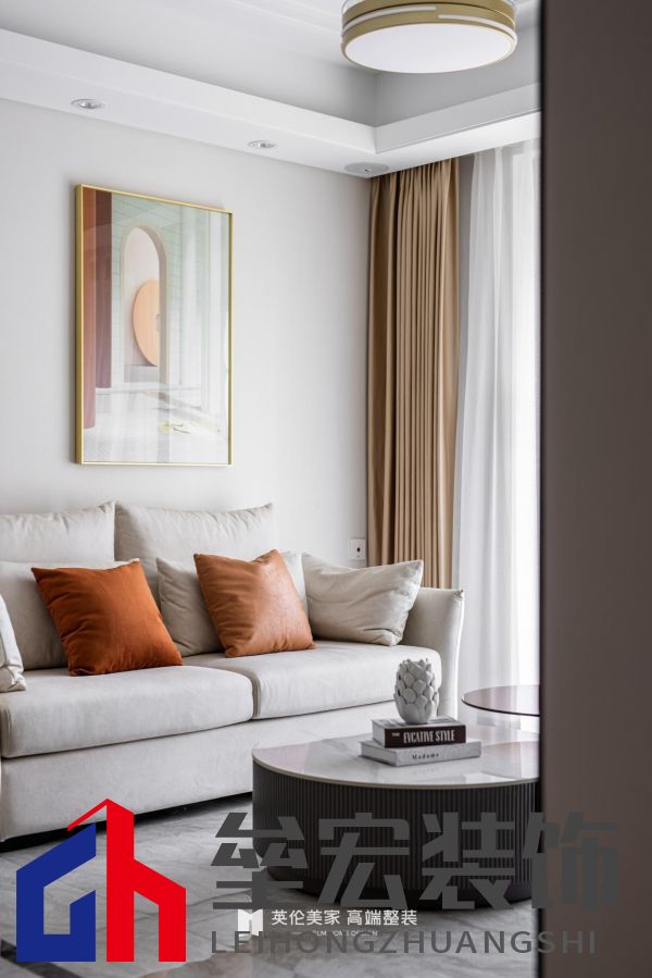 客廳面積不算特別大,搭配淺色二人位沙發(fā),不會讓客廳看起來局促,利用撞色抱枕裝飾,為空間增添亮色。圓形茶幾中和了沙發(fā)的規(guī)整,整體空間更加和諧。