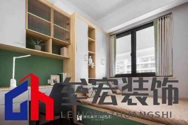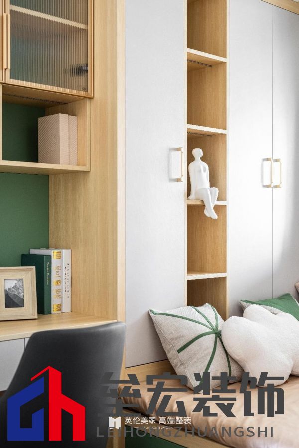 另一個(gè)兒子房空間整體的顏色以原木色和青草綠為基調(diào),主做榻榻米設(shè)計(jì),底部留有超多收納空間,與定制書桌搭配和諧,讓臥室不再單調(diào),滿足學(xué)習(xí)和休息要求,室內(nèi)整體和諧。