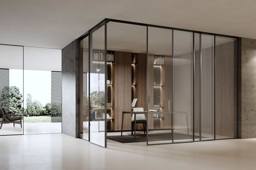 通過(guò)德立全景門(mén)(玻璃隔斷門(mén)),重新劃分房屋的動(dòng)靜分區(qū),讓家擁有流暢的生活動(dòng)線(xiàn)。對(duì)于日常使用最頻繁的兩個(gè)空間,將客廳與餐廳無(wú)界鏈接,融為一體。通透的玻璃,細(xì)膩的紋理,收窄的邊框,放眼望去延展全景視野。邀約朋友相聚晚餐,暢意洄走,恣意恬適,縱享自由自在時(shí)光。 02.多元場(chǎng)景運(yùn)用,成就美學(xué)空間 隨著居家辦公成為不少年輕人的常態(tài),獨(dú)居生活需要留出辦公和學(xué)習(xí)的安靜空間,滿(mǎn)足工作與愛(ài)好的需求。 德立全景門(mén)在不影響原來(lái)的客廳布局下,打造居家式的“玻璃書(shū)房”。