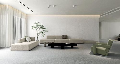 應(yīng)用產(chǎn)品:范思哲黑、紫花漫(花漫黃) 盡管天花板沒有任何的造型和層次,但客廳給人一種干凈利落的視覺效果,讓空間顯得更加通透明亮?!揪_裘白】與【云紗深灰】的獨(dú)特肌理,搭配時(shí)尚精致的軟裝家具,能提升整體氛圍與品質(zhì)感,讓人自在舒服,放松身心。