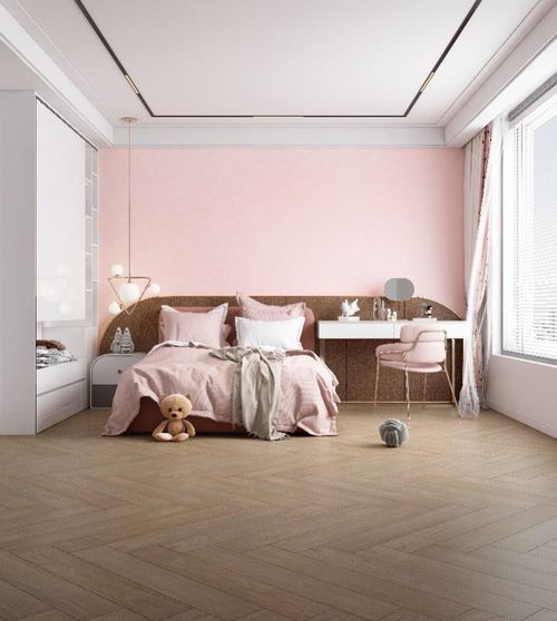 應(yīng)用產(chǎn)品:櫻花粉、海南黃花梨-淺卡其 鋪貼成人字形的瓷磚、幾何設(shè)計(jì)和樸實(shí)的中性色調(diào),搭配柔和的紡織品、清新的墻紙,打造出了俏皮但不失精致的室內(nèi)風(fēng)格。
