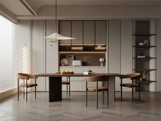 據(jù)悉本次定制展上,筑美家居將帶來(lái)5款春季整家新品,包含侘寂、日式、奶油、極簡(jiǎn)、意式等不同風(fēng)格。 清簡(jiǎn)侘寂風(fēng)——霧隱禪蹤