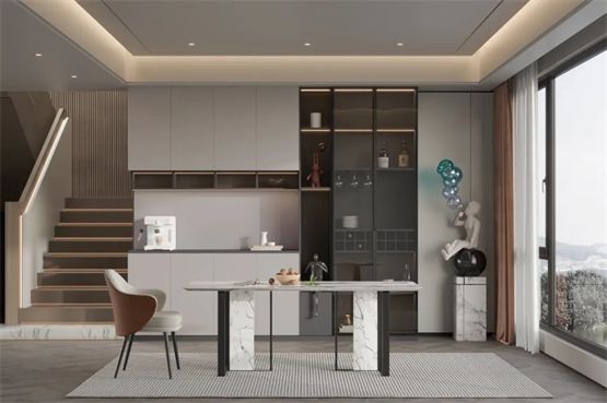·金屬壓紋鐵灰、雅白同紋異色碰撞,淺卡其居中調(diào)和,時(shí)尚又不失典雅。 ·干凈利落的直線搭配柔和起伏的格柵,理性與溫柔并存,呈現(xiàn)藝術(shù)格調(diào)。 ·PET膚感門板,如新生兒肌膚般滑潤(rùn),帶來(lái)治愈心靈的精神慰藉。 ·藝術(shù)布局,開放又帶幾分內(nèi)斂,低調(diào)又含些許鋒芒,尺度恰到好處。 意式簡(jiǎn)約風(fēng)——米蘭格調(diào)