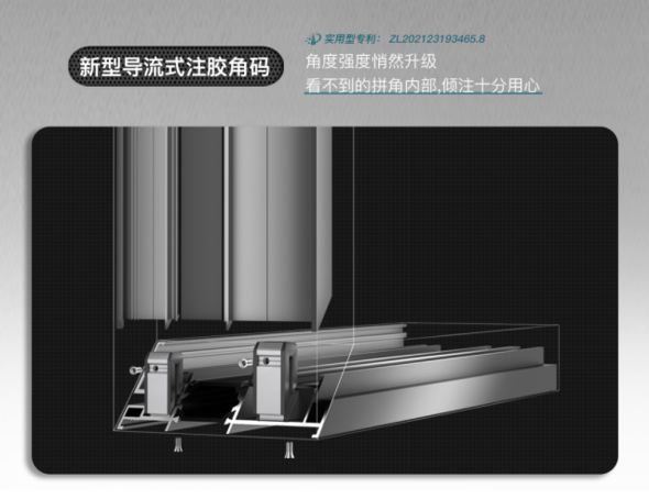拼角內部也傾注了品牌的細致小心思,新型導流式注膠角碼,注入雙組份組角膠,角度強度和密封性大大提升,同時轉角接縫銜接美觀,設計十分人性化。