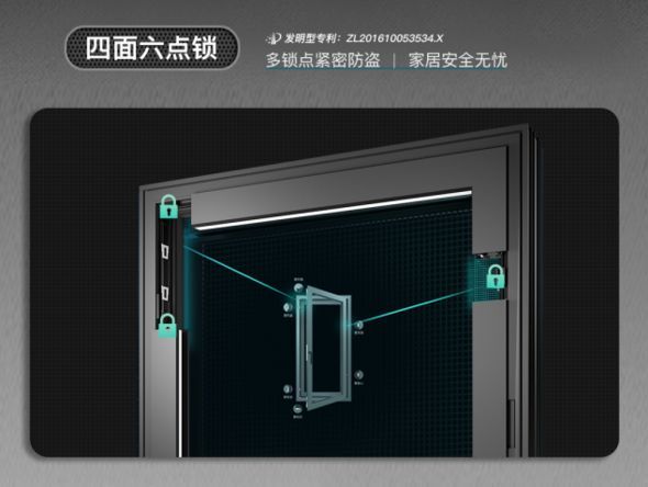 四面六點鎖專利技術,多鎖點緊密防盜,安全系數高,能幫助我們打造安全無憂的家居生活。 精湛工藝,營造非凡品質感