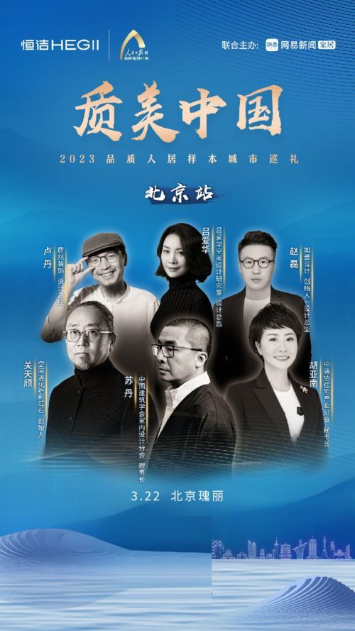 品質(zhì)人居普適性需求迸發(fā) 城市設(shè)計何以實現(xiàn)與時代同頻共振? 恒潔 X 網(wǎng)易 2023「質(zhì)美中國」品質(zhì)人居樣本城市巡禮 第一站 北京 關(guān)天頎X蘇丹同臺分享 深入探討品質(zhì)人居新樣本 聯(lián)袂引領(lǐng)城市生活未來潮流 2020年,「質(zhì)美中國」設(shè)計師系列活動正式啟航,聯(lián)結(jié)行業(yè)設(shè)計勢力孵化國內(nèi)家居設(shè)計圈層的頂級IP。2023年,家居新國貨代表品牌恒潔與態(tài)度媒體網(wǎng)易煥新發(fā)布「質(zhì)美中國」2023,深度聚焦“品質(zhì)人居樣本”新話題,聚集設(shè)計圈重磅大咖與設(shè)計新勢力同臺分享,煥發(fā)城市深層設(shè)計力量!更有「2023網(wǎng)易城市設(shè)計精英榜」持續(xù)助力,搭建青年設(shè)計新勢力成長平臺。 品質(zhì)人居,觸及未來!3月22日,「質(zhì)美中國」品質(zhì)人居樣本城市巡禮第一站落地北京。以“品質(zhì)人居樣本”為題,邀請空間進(jìn)化&彩虹石創(chuàng)始人 關(guān)天頎 與中國建筑學(xué)會室內(nèi)設(shè)計分會理事長 蘇丹 同臺演講,更有中國建筑裝飾協(xié)會住宅裝飾裝修和部品產(chǎn)業(yè)分會秘書長 胡亞南 等重磅嘉賓,攜手北京設(shè)計菁英共聚一堂,深度探討城市品質(zhì)人居新范式。 聯(lián)結(jié)設(shè)計頭部力量 剖析品質(zhì)人居新樣本 思潮碰撞,暢想設(shè)計!活動現(xiàn)場,空間進(jìn)化&彩虹石創(chuàng)始人 關(guān)天頎 以“人文智造”為主題,講述他對于空間設(shè)計的見解。