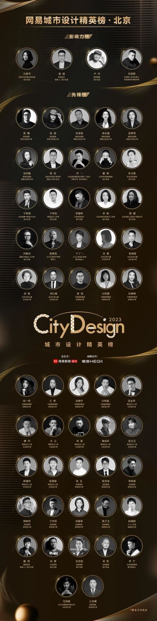 2023年,網(wǎng)易設(shè)計重磅推出「網(wǎng)易城市設(shè)計精英榜」,期望借助榜樣性力量助推設(shè)計師成長,聯(lián)結(jié)設(shè)計師頭部資源,搭建中國設(shè)計師互通洽談的理想空間。進(jìn)而引入更多元化的聲音,打破設(shè)計師圈層壁壘和信息繭房,激發(fā)行業(yè)的活力與創(chuàng)造力。