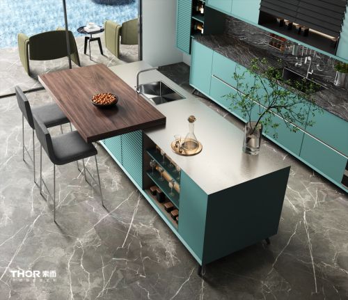 產(chǎn)品優(yōu)勢(shì) 為了適應(yīng)市場(chǎng)需求,THOR索而不斷加快發(fā)展腳步,以健康環(huán)保、品質(zhì)感強(qiáng)、防水防火的304食品級(jí)不銹鋼為基材,從單一的櫥柜品類(lèi)逐漸擴(kuò)大至衣柜、衣帽間、酒柜、浴室柜、陽(yáng)臺(tái)柜等整家產(chǎn)品,讓消費(fèi)者能夠享受一體化定制服務(wù)。