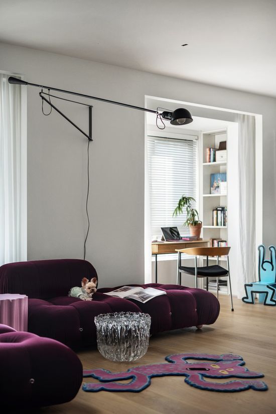 藝術(shù)在左,日常在右 當(dāng)代年輕人對(duì)潮流的追求從日常著裝逐漸侵入生活的方方面面,追求潮流似乎成為downtown青年的新興生活方式。在時(shí)尚領(lǐng)域,時(shí)裝的時(shí)效性成為衡量流行的標(biāo)準(zhǔn)。而在家居設(shè)計(jì)中,實(shí)用性和流行度需要平衡考慮、相輔相成。如何在家這個(gè)空間中營(yíng)造出新鮮感就是當(dāng)下設(shè)計(jì)師們的課題了。 在與柯沅伽的交流中,她特別談到家中的無(wú)過(guò)道設(shè)計(jì),將客廳打造成一個(gè)完整的空間,家就是她心境的完全寫(xiě)照。110平米的空間里每一處都是她精心挑選的心愛(ài)之物??蛷d裝滿了自己喜歡的藝術(shù)品,家具和軟裝可以根據(jù)季節(jié)與心情隨意變化組合,任情緒自由流動(dòng),無(wú)拘無(wú)束。