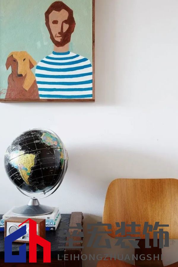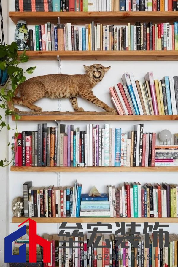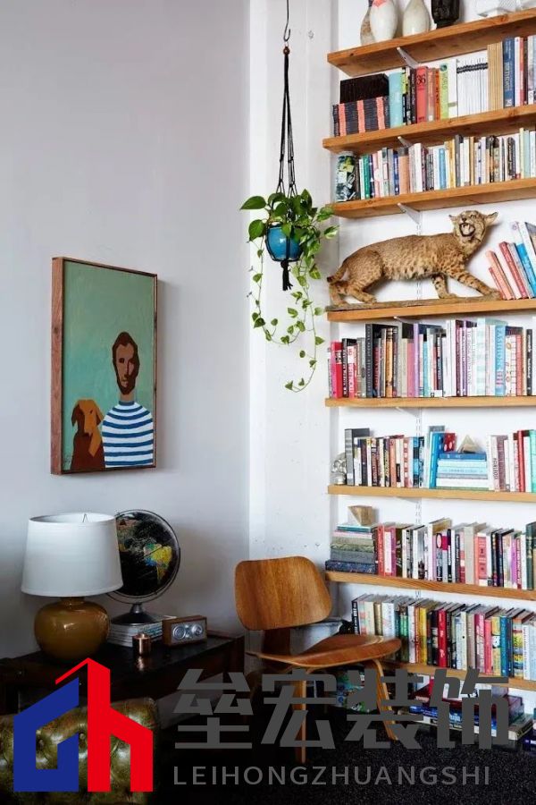 ? 02、 藝術(shù)型書空間Caroline是名雜志社編輯,她家是個(gè)改造后的閣樓。整個(gè)空間如她一樣有趣、酷炫。她熱衷于改造,就好像在一張空白畫布上創(chuàng)作?!皩?duì)我來說,一個(gè)空間永遠(yuǎn)不會(huì)完工,因?yàn)樗蔷幼≌呱畹恼鎸?shí)反映。”閱讀角是家里的愜意所在,白日里她常以多種姿勢(shì)癱在這兒,翻動(dòng)喜歡的書籍。擱板架延續(xù)至整墻,與木質(zhì)單椅保持統(tǒng)一材質(zhì)、色系,整潔干凈且富有延續(xù)性。曾喜歡用色彩整理書籍的她,現(xiàn)在更愿意給予空間一種自在隨性的氛圍感,于是當(dāng)下的收納更偏主題性。旁邊一幅Hidir?Jiang?Tapanoglu的總統(tǒng)肖像,為這個(gè)松弛角落增添一抹別樣藝術(shù)氣息。