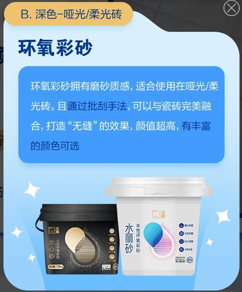 美縫選購記住要點(diǎn) 總的來說,光照?qǐng)鼍岸嗟耐扑]聚脲材質(zhì)美縫,對(duì)顏值有需求的則選環(huán)氧材質(zhì)美縫。 這里推薦pick立邦的美縫產(chǎn)品,實(shí)力“抗打”,口碑“不塌房”。 怎么樣,美縫選擇技巧,你get到了么? |