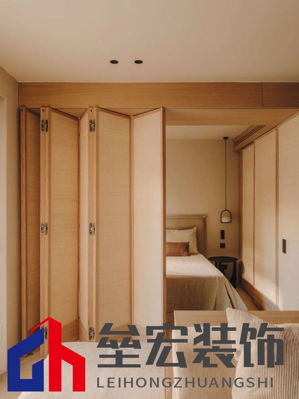 主臥室通過(guò)滑動(dòng)折疊門(mén)與起居區(qū)隔開(kāi),確保隱私的同時(shí)保留開(kāi)放感。隱藏在書(shū)架后的門(mén)通向浴室和第二間臥室,為空間增添了巧妙的層次感。