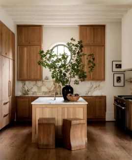 設(shè)計(jì)師用業(yè)主豐富的藝術(shù)藏品裝點(diǎn)墻面,精選跨時(shí)代的攝影佳作,為空間增添了深厚的藝術(shù)氛圍。開(kāi)放式廚房移除兩室間的隔墻,營(yíng)造更為寬敞明亮的效果。淺色調(diào)的木質(zhì)櫥柜與地板和諧相融,大理石防濺板與圓形窗戶則為整體設(shè)計(jì)增添戲劇化的亮點(diǎn)。 ?