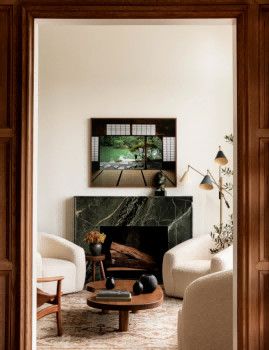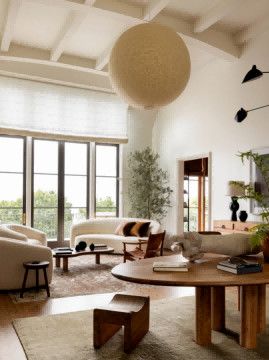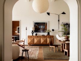 Betsy?Brown對(duì)于原有空間里對(duì)于年輕人不夠友好的設(shè)計(jì)進(jìn)行了重新規(guī)劃,不僅優(yōu)化了空間配置,更在美學(xué)層面展現(xiàn)了非凡的創(chuàng)造力。設(shè)計(jì)師將現(xiàn)代生活的舒適性與經(jīng)典美學(xué)線條融合,構(gòu)筑出一個(gè)洋溢著藝術(shù)氛圍、獨(dú)具魅力的居所,充分彰顯藝術(shù)之家獨(dú)特而不凡的品味。 ? 米白、棕褐及灰黑等溫和而深邃的自然色彩籠罩空間,家具與裝飾品的挑選秉持著極簡(jiǎn)主義的流暢線條感。 在材質(zhì)運(yùn)用上,Betsy?Brown巧妙融入木材、石材、亞麻織物與皮革等自然元素,不同的質(zhì)感,以及在歲月洗禮下別具一格的風(fēng)貌顯現(xiàn)。這個(gè)占地4500平方英尺的家,共15個(gè)房間,涵蓋書房、藝術(shù)創(chuàng)作室、攝影工作室、三間臥室,以及底層的酒窖、酒吧和健身區(qū)域等。Brown巧妙地將客廳劃分為兩個(gè)獨(dú)立空間,并在接近前門的位置增設(shè)了一張橢圓形的大型餐桌,既實(shí)用又添雅致。站在陽(yáng)臺(tái)上,可以飽覽伯明翰連綿的山巒和城市標(biāo)志性建筑的壯麗景色。這些自然與人文景觀為設(shè)計(jì)師提供了無(wú)盡的靈感,她巧妙地將室外蔥郁的綠意引入室內(nèi),實(shí)現(xiàn)了一種將外界美景融入居家空間的藝術(shù)效果。