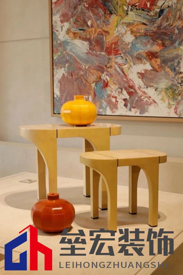 ▲展覽現(xiàn)場:一對建筑感十足的Portico?邊桌,通體由羊皮紙飾面包裹而成;搭配黃色與橘色的?Peking?Globe?花瓶 Alexander?Lamont?的重要價(jià)值不僅在于復(fù)興與傳承古典技法,更在于他賦予了工藝與材料新的可能性。本次展覽中展示了他在鑄銅、天然漆法、羊皮紙、鯊革(珍珠魚皮)與飾金等經(jīng)典工藝在當(dāng)代設(shè)計(jì)上的卓越創(chuàng)新,涵蓋了家具、燈具以及令人驚嘆的收藏級(jí)限量款作品,完美呈現(xiàn)了其對裝飾藝術(shù)的深刻理解與非凡創(chuàng)造力。