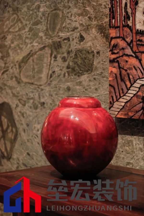 ▲展覽現(xiàn)場:蛋殼漆漸變紋樣的?Figure?Vase Alexander?Lamont?的設(shè)計(jì)靈感既源自東西方豐富的人文歷史,圍繞東方冥想實(shí)踐的詩意美而構(gòu)思;也汲取了中國宋代文人文化的深邃智慧。他的作品總是對雋永的設(shè)計(jì)、更深層的歷史文化、人和時(shí)間的力量的圓融表達(dá)。