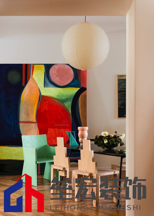 客廳融合了復(fù)古與現(xiàn)代的元素。原始的木質(zhì)地板與修復(fù)后的壁爐成為空間的亮點(diǎn),而極簡風(fēng)格的沙發(fā)和幾何線條的茶幾則增添了當(dāng)代感。墻上掛著抽象藝術(shù)畫,搭配幾何形態(tài)的立體雕塑,營造出一個適合家庭聚會又富有藝術(shù)氛圍的空間。