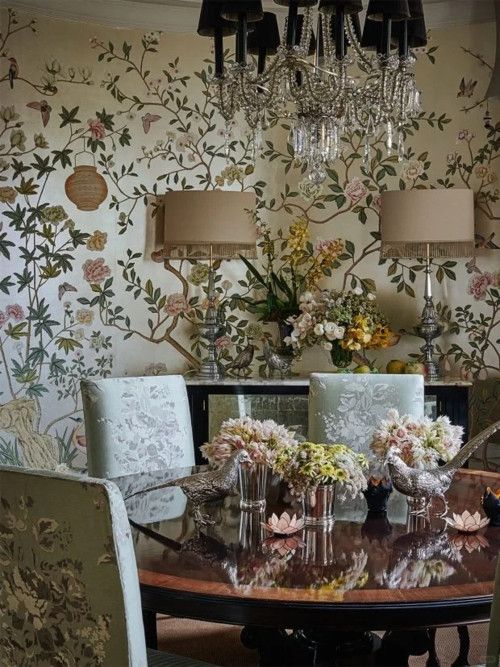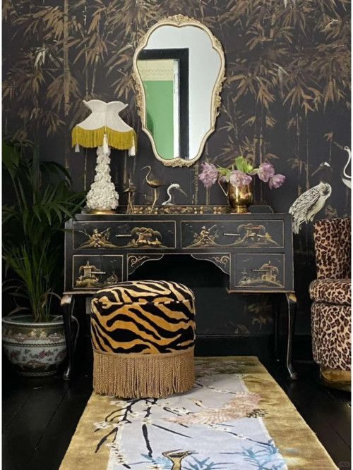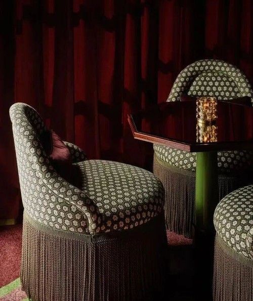 ?Martin?Brudnizki 02° 戲劇的沖突 那些看似不合理的“碰撞” 花卉、幾何、動物紋、復古印花等不同圖案混搭,無論是條紋墻紙搭配波西米亞地毯,或格紋沙發(fā)與熱帶植物壁畫結合。 天鵝絨、絲綢、金屬、藤編、大理石等不同材質(zhì)的碰撞,增強空間質(zhì)感,絲絨沙發(fā)搭配黃銅茶幾,或木質(zhì)書架與鏡面裝飾結合,材質(zhì)間的沖突感。很多時候還會看到繁復的壁紙、壁畫或裝飾線條(如護墻板、石膏線)打造“視覺轟炸”效果。 ?