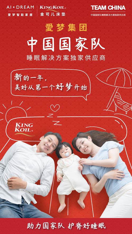 ??2022年1月24日,愛(ài)夢(mèng)集團(tuán)攜旗下金可兒、舒達(dá)、盧浮百登三大品牌,與TEAM CHINA中國(guó)國(guó)家隊(duì)成功簽約,正式成為TEAM CHINA中國(guó)國(guó)家隊(duì)睡眠解決方案獨(dú)家供應(yīng)商。