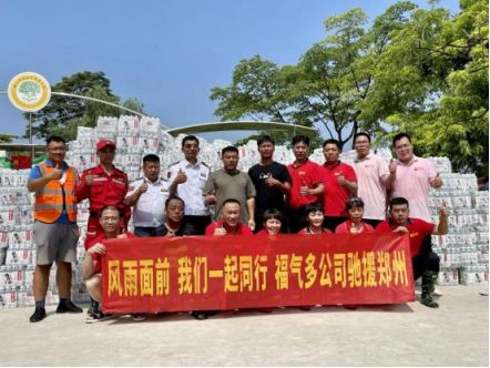 ??積極踐行公益,勇?lián)鐣?huì)責(zé)任 ??作為溫?zé)釋嬀哳I(lǐng)域的龍頭企業(yè)之一,福氣多還積極踐行社會(huì)責(zé)任,推進(jìn)公益事業(yè)。2021年7月,河南多地連降暴雨引發(fā)洪澇災(zāi)害,福氣多企業(yè)及代理商火速馳援災(zāi)區(qū),通過(guò)多種渠道購(gòu)買(mǎi)籌集食品、水等緊需物資,滿滿三車(chē)物資到達(dá)新鄉(xiāng)市鳳泉區(qū)耿黃鎮(zhèn)魯堡村災(zāi)民安置點(diǎn),為解決災(zāi)區(qū)百姓的生活燃眉之急奉獻(xiàn)出綿薄之力。