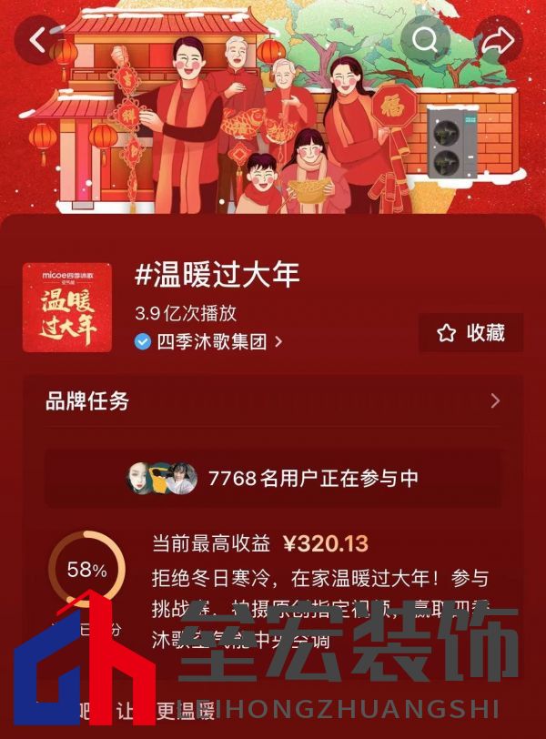 ??四季沐歌空氣能—面面俱到舒適體驗 ??暖身亦暖心,將“暖”字貫穿至活動的每一處細節(jié)。可以說,#溫暖過大年#抖音挑戰(zhàn)賽以喜聞樂見且簡單易行的方式,全心助力消費者打造令人向往的、溫暖的生活場景,體現(xiàn)了四季沐歌對消費者需求的深度洞察,引導消費者建立更符合現(xiàn)代人生活節(jié)奏與精神追求的生活方式。截至到2月3日,即大年初三,#溫暖過大年#抖音區(qū)域挑戰(zhàn)賽已播放超過3.9億次,成為這個新年里的又一個全新“年俗”。