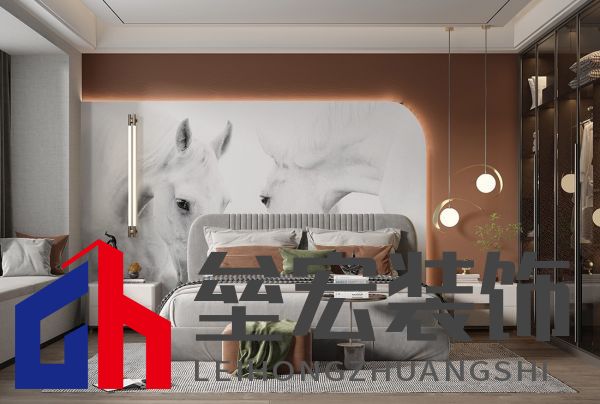 ??或如馳騁的駿馬,整體色調(diào)以白色為主,畫面中兩匹白色的駿馬,象征純潔和高貴,駿馬有乘風(fēng)破浪,縱橫馳騁的美好寓意,巧妙的明暗色彩運(yùn)用賦予空間超凡脫俗的藝術(shù)格調(diào)。