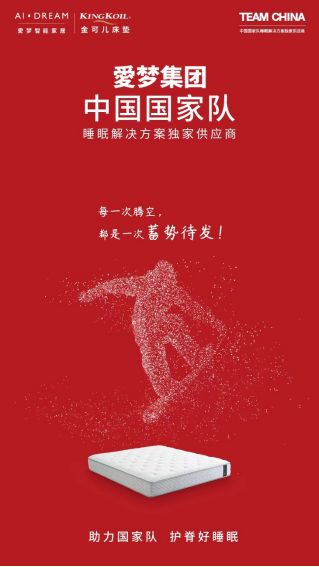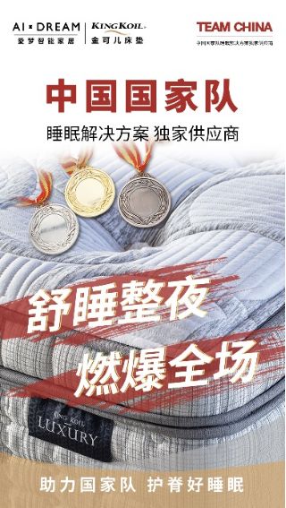 ??金可兒品牌所屬愛夢集團(tuán),是TEAM CHINA中國國家隊睡眠解決方案供應(yīng)商。金可兒護(hù)脊好睡眠,助力中國國家隊出征!與此同時,金可兒提醒您:賽事很精彩,觀賽注意勞逸結(jié)合,享受歡聚團(tuán)圓美好時光。