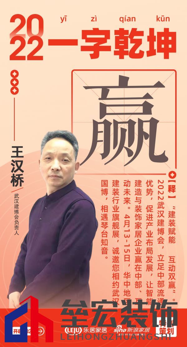 “樂業(yè)安居”是中國人最為共情之處,湖北家居人深諳漢字對(duì)于國人、對(duì)于企業(yè)的非凡意義,武漢新浪家居戰(zhàn)略合作伙伴、家居行業(yè)優(yōu)秀代表:武漢建博會(huì)負(fù)責(zé)人王漢橋,以「贏」字打開新年儀式感。 “建裝賦能,互動(dòng)雙贏”。2022武漢建博會(huì),立足中部流通優(yōu)勢(shì),促進(jìn)產(chǎn)業(yè)布局發(fā)展,讓智能建造與裝飾家居企業(yè)贏在中部、互動(dòng)未來。4月13-15日,華中地區(qū)建裝行業(yè)旗艦展,誠邀您相約武漢國博,相遇琴臺(tái)知音?!岗A」字完美表達(dá)了2022年武漢建博會(huì)的愿景。 虎歲賁華,說好中國字,鏈接美好生活! |