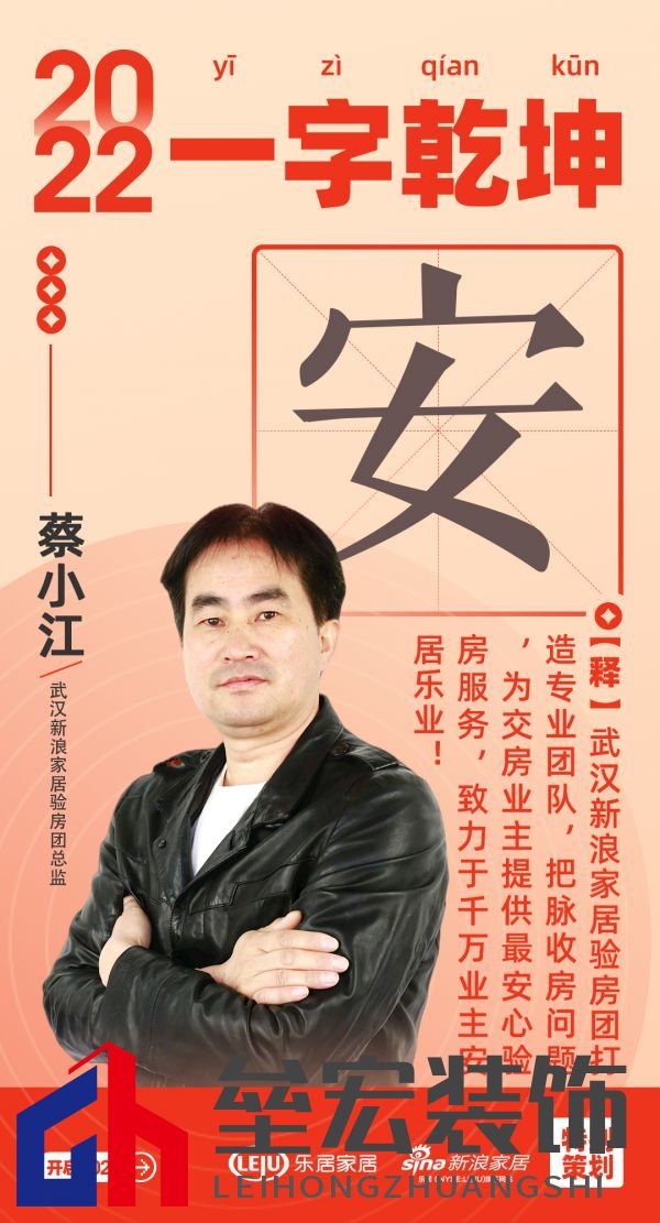“樂業(yè)安居”是中國人最為共情之處,湖北家居人深諳漢字對于國人、對于企業(yè)的非凡意義,武漢新浪家居戰(zhàn)略合作伙伴、家居行業(yè)優(yōu)秀代表: 武漢新浪家居驗房團(tuán)總監(jiān)蔡小江,以「安」字打開新年儀式感。 武漢新浪家居驗房團(tuán)打造專業(yè)團(tuán)隊,把脈收房問題,為交房業(yè)主提供最安心驗房服務(wù),致力于千萬業(yè)主安居樂業(yè)?!赴病棺滞昝辣磉_(dá)了2022年武漢建博會的愿景。 虎歲賁華,說好中國字,鏈接美好生活! |