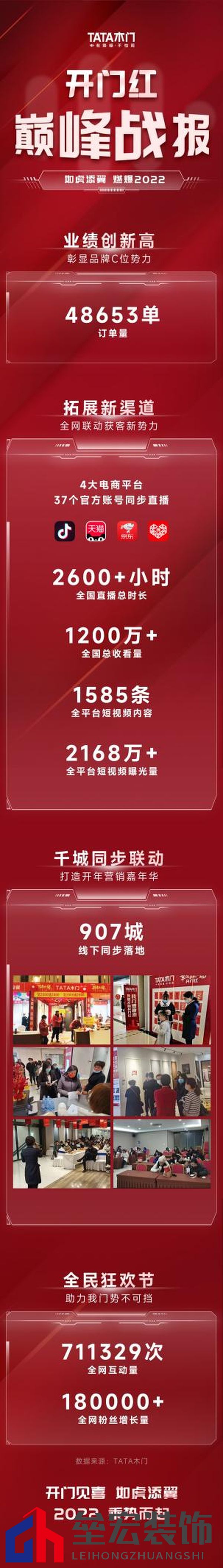 ??用48653單成交轉(zhuǎn)化 給出行業(yè)“開門紅”營(yíng)銷范本 ??直播總時(shí)長(zhǎng)超2600+小時(shí)、全平臺(tái)視頻內(nèi)容1585條、其短視頻曝光量突破2168萬(wàn)+,總收看量超1200萬(wàn)人,全網(wǎng)互動(dòng)量711329次、全網(wǎng)粉絲量猛增18萬(wàn)+,并最終實(shí)現(xiàn)了48653單的成交轉(zhuǎn)化......這一連串的數(shù)據(jù)就是TATA木門在春節(jié)期間啟動(dòng)的開門紅營(yíng)銷的戰(zhàn)報(bào)數(shù)據(jù)。全國(guó)范圍內(nèi)37個(gè)官方賬號(hào)在抖音、天貓、京東和拼多多四大平臺(tái)同步直播聯(lián)動(dòng),TATA木門用一場(chǎng)直播再一次證明了品牌的高度與品牌號(hào)召力。 ??誰(shuí)能想到,在2021年房地產(chǎn)市場(chǎng)充滿了不確定性的一年中,存量房市場(chǎng)也出現(xiàn)了增速放緩的趨勢(shì),加之原材料價(jià)格上漲、消費(fèi)需求減弱等主客觀因素影響下,無(wú)論是大家居行業(yè)或是聚焦于木門行業(yè),都承受著巨大的壓力。然而凡是總有例外,正是在這樣的大環(huán)境下,TATA木門卻用一場(chǎng)漂亮的開門紅進(jìn)一步擴(kuò)大行業(yè)優(yōu)勢(shì),實(shí)現(xiàn)逆勢(shì)增長(zhǎng),為行業(yè)同仁提供了一個(gè)可供參考的“教科書”級(jí)營(yíng)銷范本。 ??在流量為王的時(shí)代下,TATA木門的開門紅數(shù)據(jù)足以令人眼紅,然而能夠取得令業(yè)界為之側(cè)目的成績(jī),TATA木門又有著怎樣的過(guò)人之處呢?