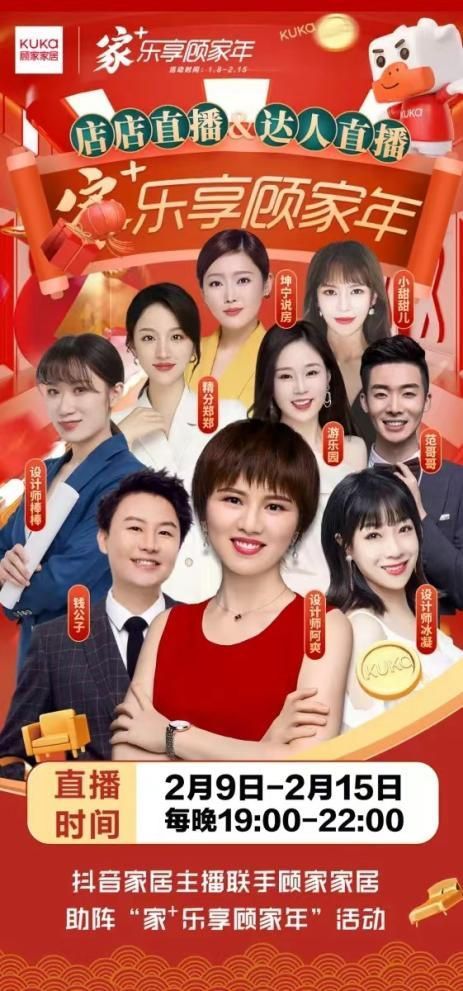 ??看到這里,讀者朋友或許會(huì)發(fā)現(xiàn),和大多數(shù)品牌的春節(jié)營銷輸出相比,比如歐派家居旗下,歐鉑尼TVC《一門一世界》主打“木門品類”,歐派櫥柜以TVC《灶神》主打廚房煥新等等。 ??而顧家家居則將旗下不同品類統(tǒng)一歸整,放到了統(tǒng)一的品牌主題之下,實(shí)現(xiàn)了更加聚焦和高效的品牌營銷閉環(huán)。 ??在完成內(nèi)容活動(dòng)的造勢(shì)和引流之后,顧家家居以品牌自播的形式聯(lián)手10位抖音頭部家居主播,利用春節(jié)黃金時(shí)間搶先進(jìn)行了53場(chǎng)直播,收獲了開年的首場(chǎng)勝利,并形成完整的營銷閉環(huán)。