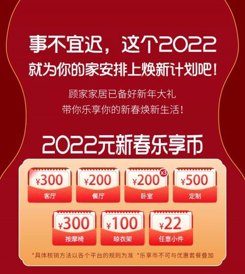 ??其次是有料。 ??此次虎年春節(jié)營銷,顧家家居的“慷慨”不僅僅是送金幣??蛷d、餐廳、臥室、定制、按摩椅,乃至晾衣架、家居小件,都包含在春節(jié)大禮包內(nèi),基本滿足了“一站式家居購物”的全部需求。