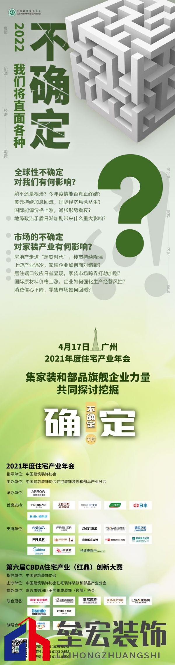 據(jù)68家A股建筑裝飾企業(yè)2021年業(yè)績預(yù)告,32家歸母凈利潤虧損,占比約47%。地產(chǎn)至暗,公裝普虧,家裝成了產(chǎn)業(yè)新風(fēng)口。2021年,家裝賽道大鱷紛紛入局資本密集涌入,行業(yè)生態(tài)面臨重構(gòu)。 資源端:大廠入局資本涌入—傳統(tǒng)裝企能否守好自己的一畝三分地? 公裝企業(yè)與房地產(chǎn)牽連至深,2021年度歸屬于上市公司股東的凈利潤均為負(fù)值,紛紛向房企提起訴訟、建材企業(yè)密集追債,在這種局勢下,家裝渠道關(guān)注度顯著提升,地產(chǎn)、物業(yè)、互聯(lián)網(wǎng)紛紛并道家裝,面對更多的跨界打劫,傳統(tǒng)裝企能把住多少基本盤? 2021混戰(zhàn)已去,2022局勢依舊迷離。 帶著這些“不確定”標(biāo)簽,我們邁入了2022年。 在這一年里,我們要面對延宕至第三個年頭的新冠疫情,面對西方國家取消全面防疫措施徹底躺平的風(fēng)險難控; 在這一年里,我們還要面對國內(nèi)經(jīng)濟(jì)需求收縮、供給沖擊、預(yù)期轉(zhuǎn)弱三重壓力,面對宏觀經(jīng)濟(jì)和微觀市場諸多不確定。 當(dāng)中國發(fā)展從數(shù)量時代進(jìn)入到質(zhì)量時代,什么樣的產(chǎn)品可以撐得起品質(zhì)家裝? 當(dāng)增量市場風(fēng)光不再,家裝的第二增長曲線在哪個坐標(biāo)系中? 當(dāng)各部委連續(xù)出臺8個文件@家裝圈,圈里人做好承接準(zhǔn)備了嗎? 當(dāng)家裝已經(jīng)成為家庭大宗消費代表,如何滿足家裝需求?落地生活方式? 4月17日(視疫情情況)廣州,2021年度住宅產(chǎn)業(yè)年會, 此次會議,將首發(fā)《2021年度中國家裝消費行為研究報告——“整裝”出發(fā)》,也將第首次發(fā)布《中國家裝設(shè)計趨勢》; 此次會議,年會首次牽手紅鼎創(chuàng)新大賽,13家家裝企標(biāo)“領(lǐng)跑者”企業(yè)、33家信用評價星級企業(yè)、72個室內(nèi)設(shè)計TOP作品、57個部品工業(yè)設(shè)計TOP作品迎來高光時刻; 此次會議,家裝和部品旗艦企業(yè)將共同在復(fù)雜局勢中合力尋找杠桿解,探討挖掘“不確定”中的“確定”。