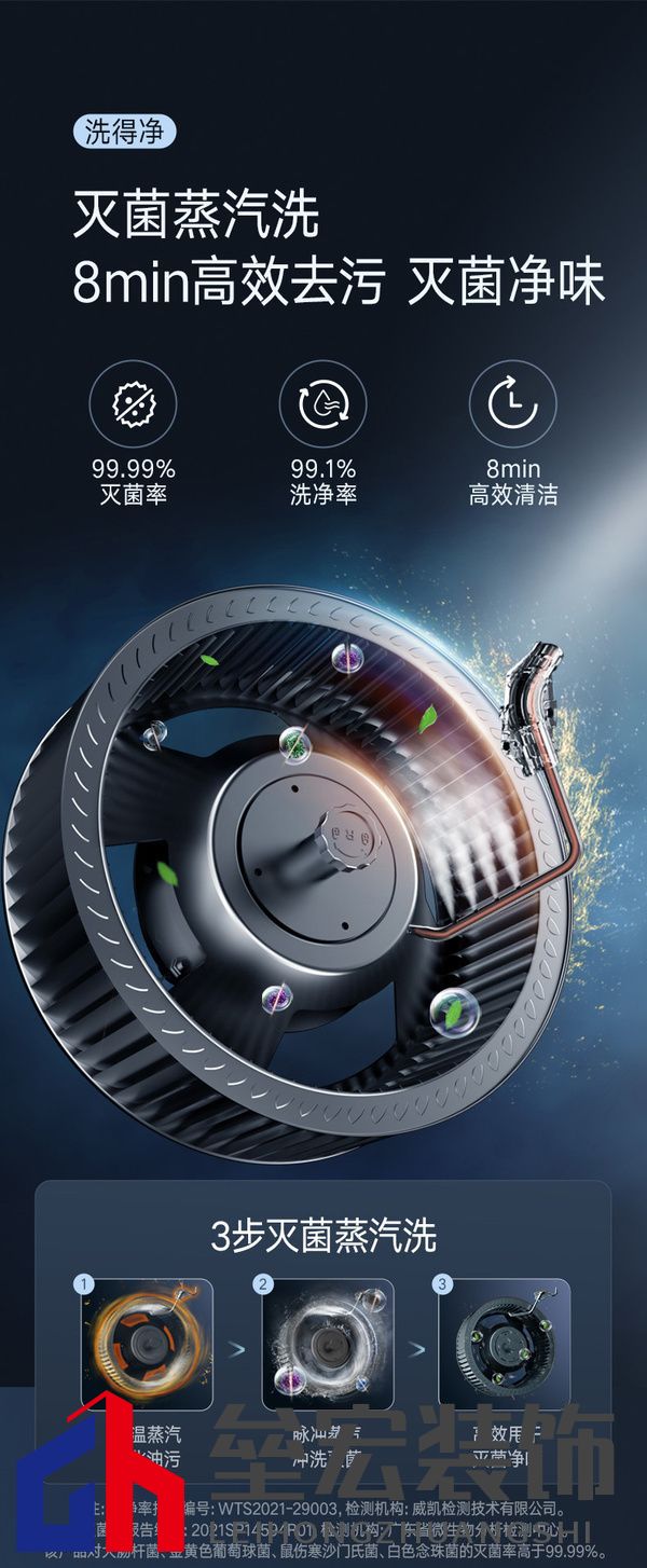 這一臺美的頂側(cè)雙吸集成灶LS5通過用戶手勢智控,體感操作,帶來了這種隨心掌控的科技感。舉手之間,風(fēng)量隨心,用智控凈煙,告別煙霧繚繞;揮手智控,化繁為簡,用輕松手勢,告別繁瑣按鍵。借助于揮手體驗,用戶可有效防止指間水漬和油污浸染面板,還原面板潔凈無痕。 因此揮一揮,揮走的不僅是油煙,更是復(fù)雜枯燥的烹飪生活。而帶來的,則是美的集成灶懂生活更懂你的智慧體驗。 第四招:八分鐘滅菌凈味的清潔體驗 占據(jù)廚房C位的集成灶,在用凈煙保證全家健康的同時,又該如何保持自身內(nèi)部清潔,避免出現(xiàn)將干凈獻給廚房,而將油污留給自己的情形?答案是定期清洗。 為此,常見的清洗方案有請專業(yè)師傅上門清潔和自主清潔。前者每次清洗成本估算約300元。如果按每年清洗兩次來算,8年清洗費用就要4800元,太費錢。后者雖然省錢,但是自主拆洗,很容易因為不熟悉內(nèi)部結(jié)構(gòu),導(dǎo)致拆得下,裝不上,還會弄臟廚房,零件滿地,實則費時費力。