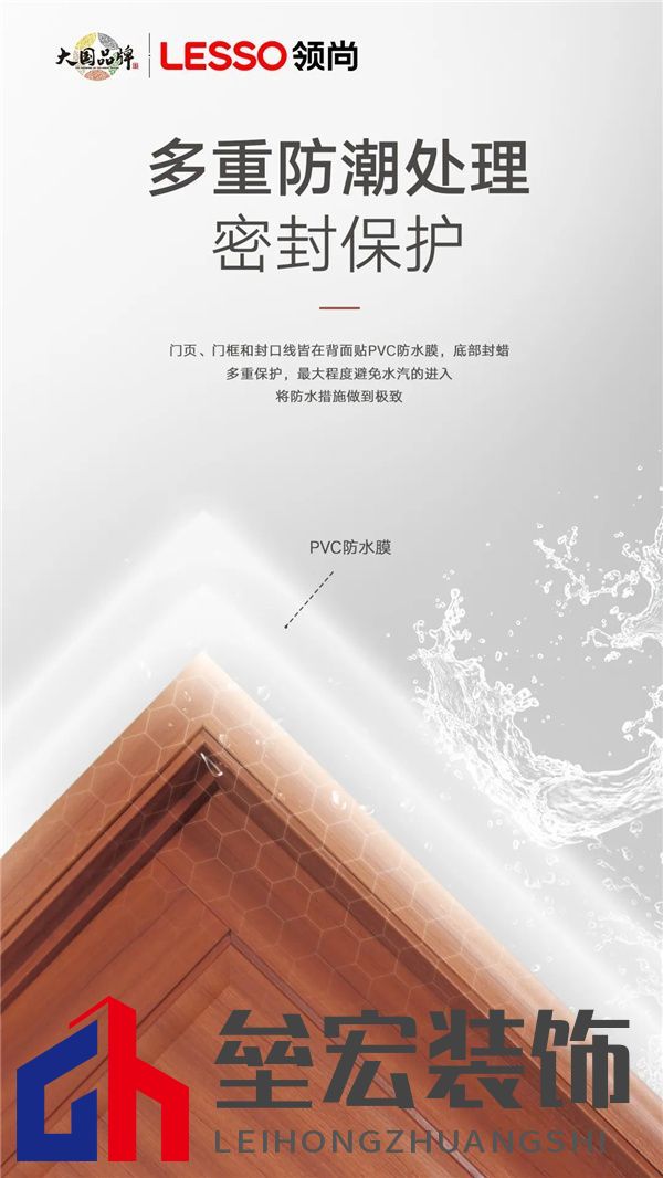 ??背面防護很重要 ??在挑選的時候一定要對背面細節(jié)關注,防止靠墻面以及當空氣中的水汽凝結成水珠在木門上滑落時的濕氣入侵(想想自己每次洗澡后的木門)。領尚木門門頁、門框和封口線,皆在背面貼PVC防水膜,有效防止空氣中的水分侵入板材內部,讓防潮效果更進一步。