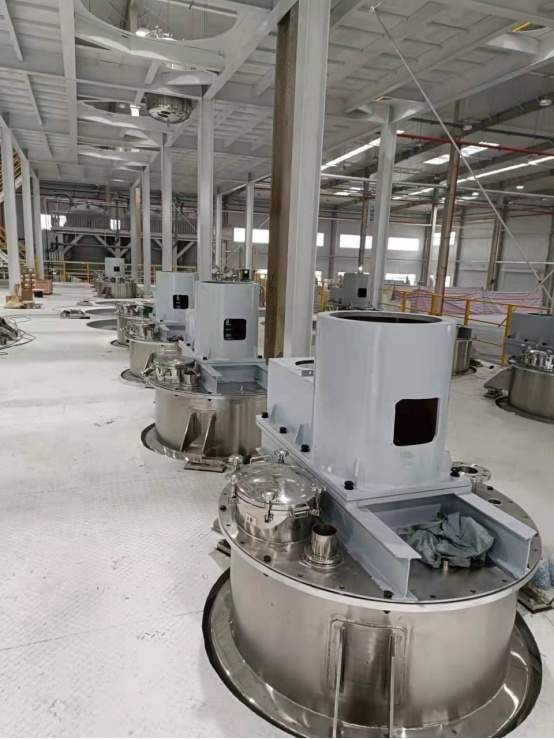 ??(產(chǎn)線三維模型圖) ??(3D model drawing of production line) ??系統(tǒng)特點:System characteristics ??1、粉體投料系統(tǒng)無塵化、自動化,自帶過濾濾芯及除塵系統(tǒng),粉體補料過程中無粉塵飛揚;粉體根據(jù)配方需求全自動配料;極大的降低人工成本和改善工作環(huán)境; ??The powder feeding system is dust-free and automatic, with its own filter element and dust removal system, and there is no dust flying in the process of powder feeding. The powder is fed automatically according to the formula and greatly reducing labor costs and improving the working environment. ??2、根據(jù)高粘度的物料特性,特殊設計混合攪拌結構,超高效混合,生產(chǎn)罐及調色罐真空設計壓力為100pa; ??According to the characteristics of high viscosity materials, the mixing structure is specially designed for ultra efficient mixing. The vacuum design pressure of production tank and color mixing tank is 100Pa. ??3、B組分生產(chǎn)罐采用專色專罐,免清洗,無液廢、固廢; ??The production tank of component B uses different tanks for each color, which is free of cleaning and liquid & solid waste. ??4、高效智能,自動化程度高,具備一鍵啟動條件;液體配料及物料轉移根據(jù)配方需求全自動運行; ??High efficiency, high degree of automation, with one-key start condition.Liquid batching and material conveying are fully automatic operated according to formula. ??5、成品采用恒壓系統(tǒng)泵送至灌裝機,這個輸送過程全部在密閉的管道中進行,與全自動灌裝機聯(lián)動。 ??The finished product is pumped to the filling machine by a constant pressure system. This conveying process is all carried out in a closed pipeline, which is linked with the automatic filling machine. ??目前項目正在安裝進行中 ??At present, the project is under installation