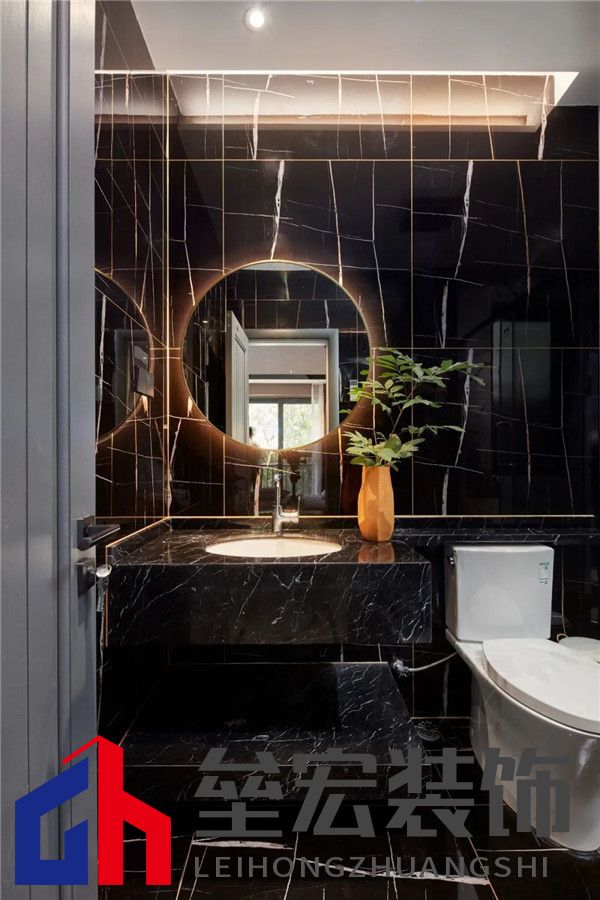 ??衛(wèi)浴間黑色和白色相呼應,橙色和綠色加以點綴,簡約的型體,輕盈靈動,清透空曠區(qū)域,在沉重的空間帶來呼吸感,使空間活起來。精美的妝面鏡,使視覺上變得更加明亮寬敞,干濕分離的設計,實用而細膩,從細節(jié)體現出設計者對高品質生活的追求。