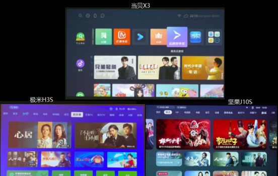 ??四、系統(tǒng)功能 ??1、UI內容 ??極米H3S和堅果J10S的UI設計,都是采用國內投影儀都在用的傳統(tǒng)式、固定UI,整體布局視覺焦點有點亂,極米H3S僅僅支持近場語音遙控,堅果10S和當貝X3一樣支持遠/近場語音遙控。 ??而當貝X3是全新UI設計,桌面軟件應用、頻道直接直給,并且像應用的云游戲專區(qū)、芒果TV、音樂頻道等都可以和手機一樣自由移動、刪除添加等,還有精彩預覽、標準/兒童/長輩模式切換。