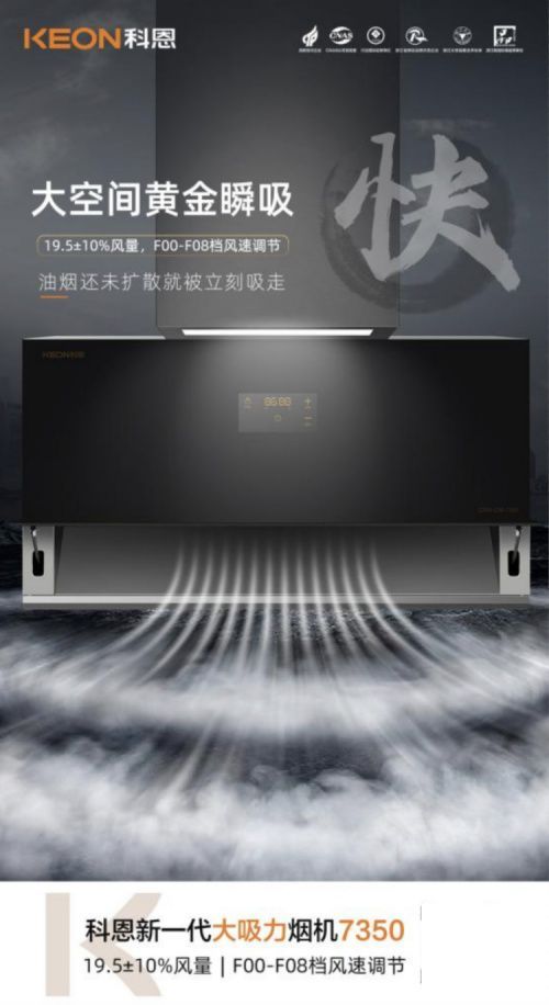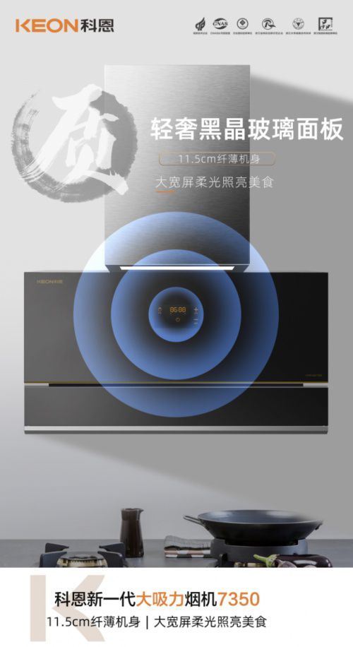 科恩新一代大吸力煙機7350即將上市,今天就跟隨小編一起,解鎖7350煙機獨特魅力。