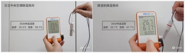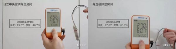 ??廣州地區(qū)雨后空氣濕度可達(dá)100%,一場“比拼”就在這里進(jìn)行。一沿江小區(qū)的兩個同樣的房間內(nèi),分別放置除濕機(jī)與日立中央空調(diào),測得初始濕度為78.8%和76.8%,測試正式開始。運(yùn)行30分鐘后,日立溫濕雙控內(nèi)機(jī)就已經(jīng)達(dá)到了設(shè)定濕度值50%,而擺放除濕機(jī)的房間內(nèi),一個小時測得室內(nèi)濕度仍然為60.7%。
